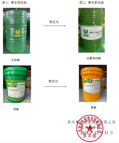 原200L全绿桶更改为200L白腰带绿桶;原16L绿桶更改为16L黄桶,标签、封盖不变(如下图),于2019年12月31日起正式执行。